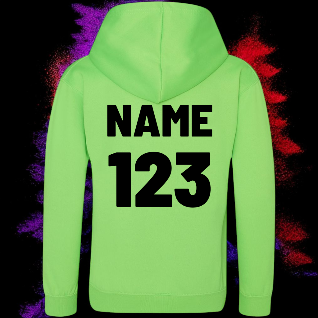 Please add the name and number you wish to be on the back of the hoddy (If left blank no print will be done on the back)